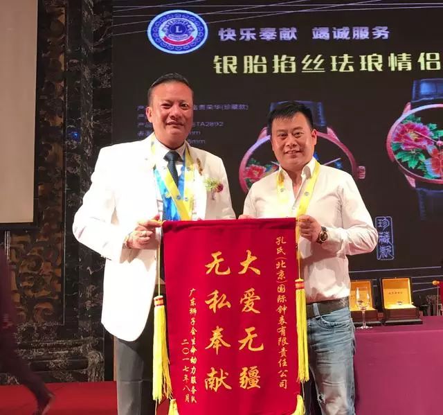 中国民族品牌孔氏珐琅(孔氏(北京)国际钟表有限责任公司)在慈善晚宴上捐出一对珐琅腕表作为慈善拍品,这是孔氏第三次参加慈善拍卖,奉献爱心。晚会现场中国知名钟表收藏家张澍生先生以19.8万拍得孔氏珐琅腕表,晚会总共筹得善款377300元!所筹善款将全部用于慈善用途!