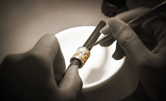 孔氏(北京)国际钟表有限责任公司内,员工正在进行珐琅首饰制作