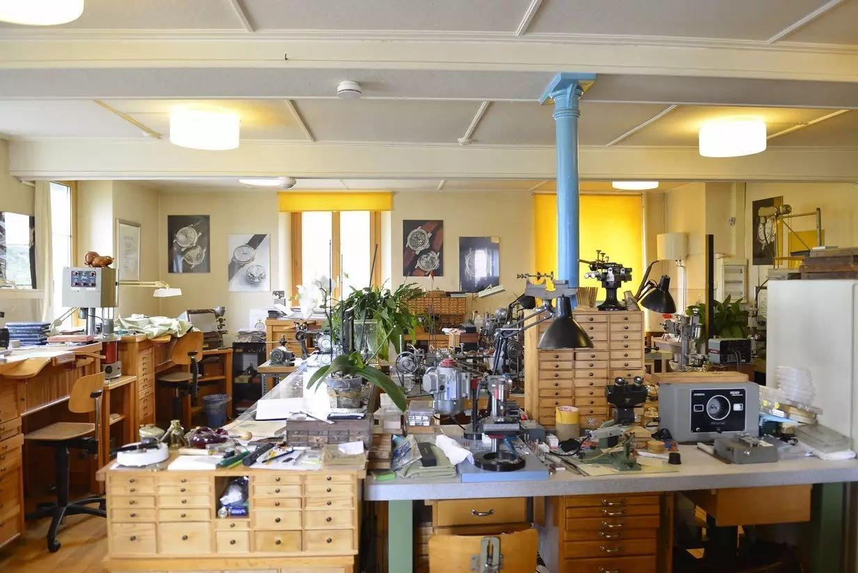 杜夫先生向来访者介绍用手工器械制表的过程,除了在手表建模时用到计算机辅助软件,一块表从头到尾的制作几乎是19世纪制表传统的复制。也只有在这里,你才能真正明白百分百的“手工”是怎样一回事,更加理解全手工制作的腕表不是工业品,是能感受到手工匠人精神的艺术品。