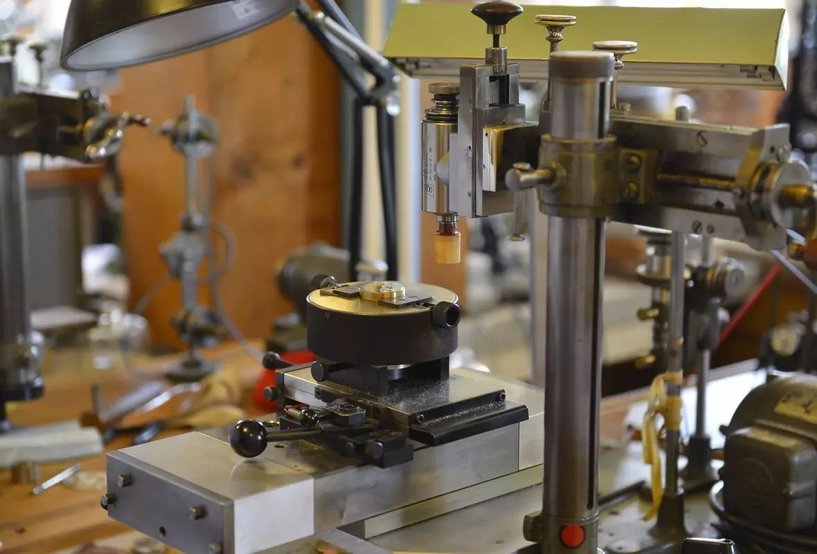 使用多年,精心维护的手工机械。杜夫先生产量极低的全手工高级制表和完美绝伦的亮闪打磨即是在这些手工机械的辅助下完成的。