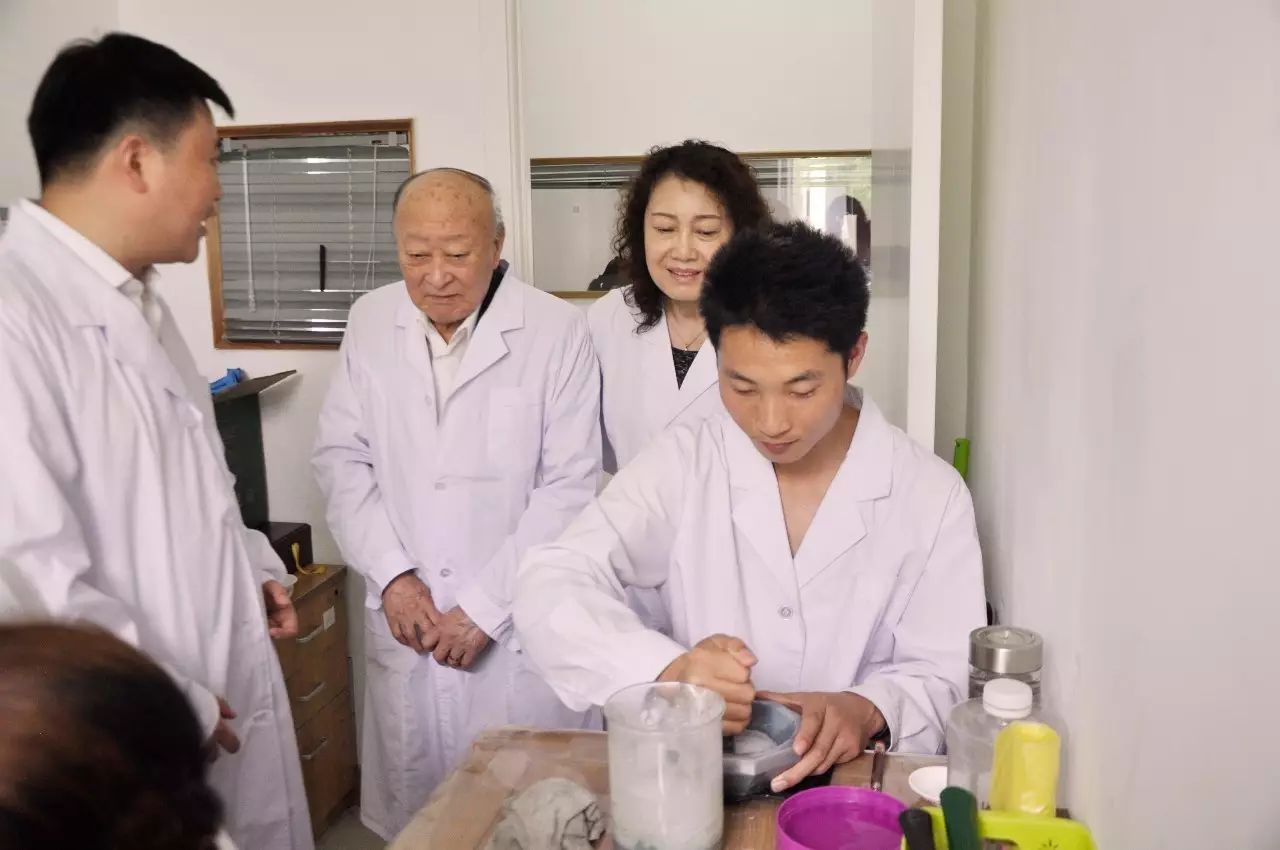 孔德墉先生携夫人莅临孔氏珐琅参观,孔氏珐琅创始人孔令俊先生亲自讲解珐琅从釉料研磨,掐丝,填色,烧制的全过程。