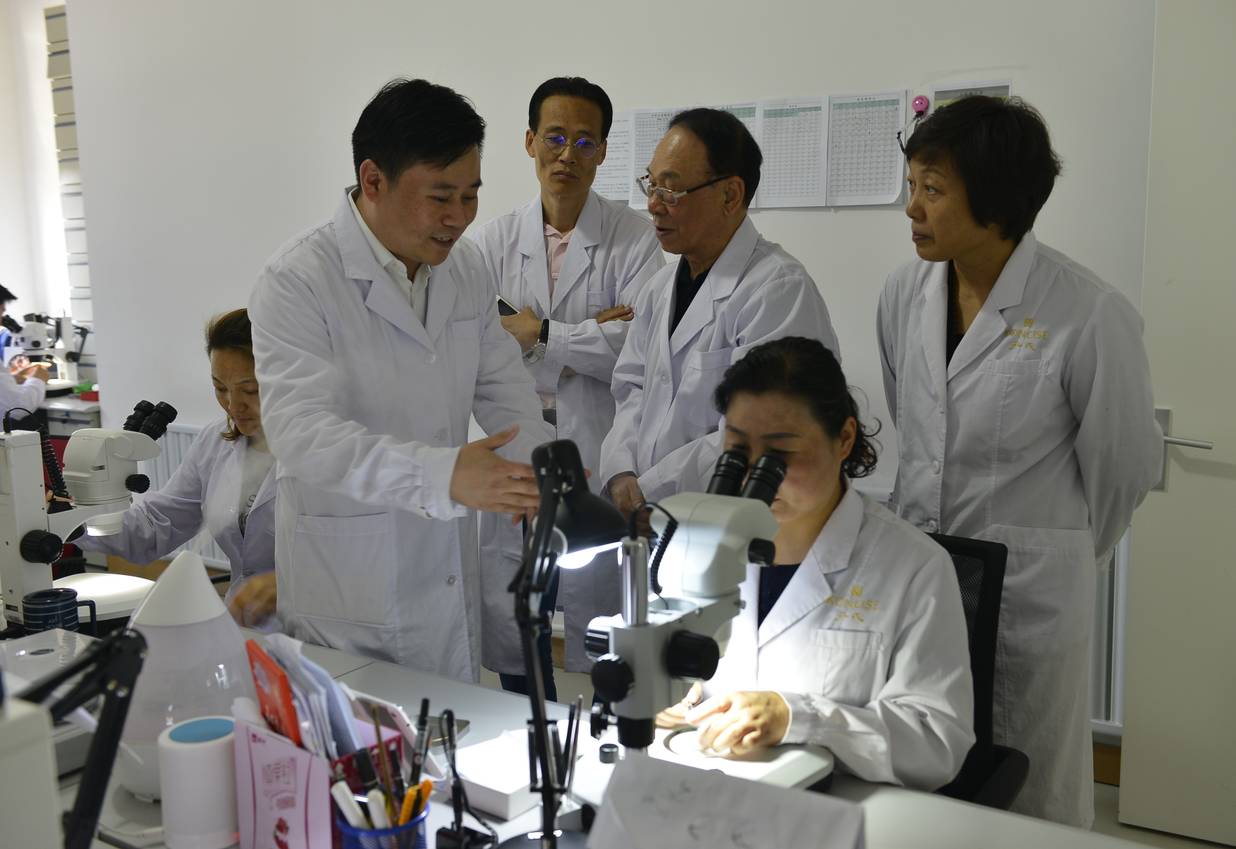 陈广文先生携夫人参观孔氏珐琅无尘工作间,孔氏珐琅创始人孔令俊先生讲解珐琅的制作工艺。
