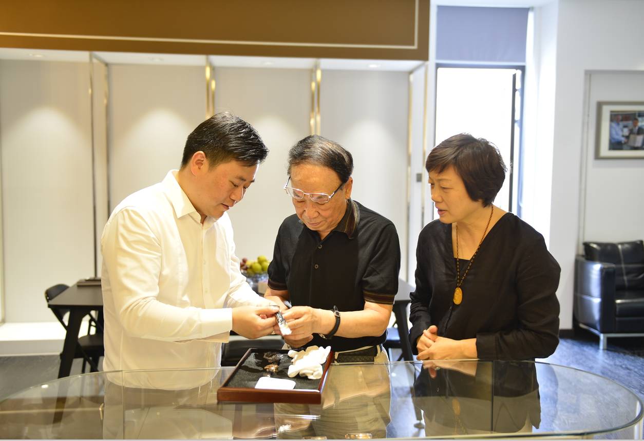 陈广文先生携夫人参观孔氏珐琅,他和夫人均精于书画,以专业艺术家的眼光审视孔氏的珐琅腕表艺术。
