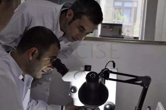 在十倍显微镜下,珐琅纤毫毕现,细微之处毫光万千,珐琅之美得以淋漓尽致的呈现。两位不由得交口称赞,”太美了,太奇妙了。年逾七十的珐琅工艺传承大师王师傅亲自讲解,给”洋学生“答疑,从研磨聊到工具,令王老爷子倍感欣喜的是,Gabriel Schweizer (高毕)先生中文水平极佳,问答一唱一和之间竟毫无窒碍,看来老爷子没准也琢磨着,啥时候带个“洋徒弟”试试。