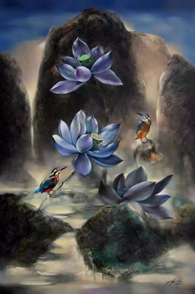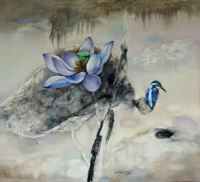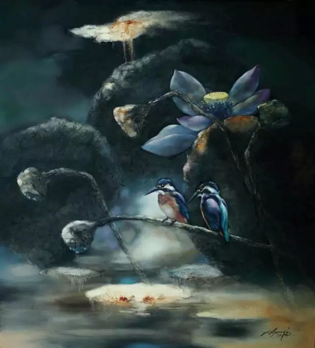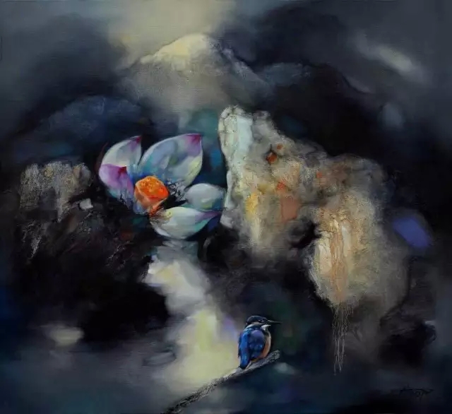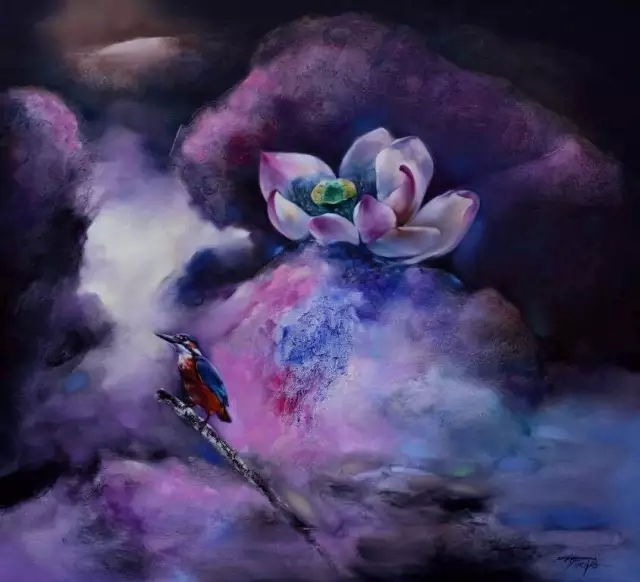 中国著名艺术家黄月先生,1982年毕业于北京电影学院美术系,1996年赴美国进修。其花鸟油画作品被中南海、钓鱼台国宾馆、全国人大会议中心,以及全国政协所收藏,另有花鸟油画《云上香寒》等20幅作品被世界著名洛克菲勒家族收藏。在当代中国,以西洋油彩表现花鸟的绘画作品少之又少,黄月以西洋油彩画花鸟,随心随意,淡定超然,已有30年之久。他注重画面多种元素的融和,花或鸟只是象征性的符号,隐藏着理性的观念;色彩是动态的,是可以肆意流淌和扩展的,而狂草般的黑色线条如同编织在色彩中的神经,将点、面有机地组合在一起,给人气韵贯通的感觉。