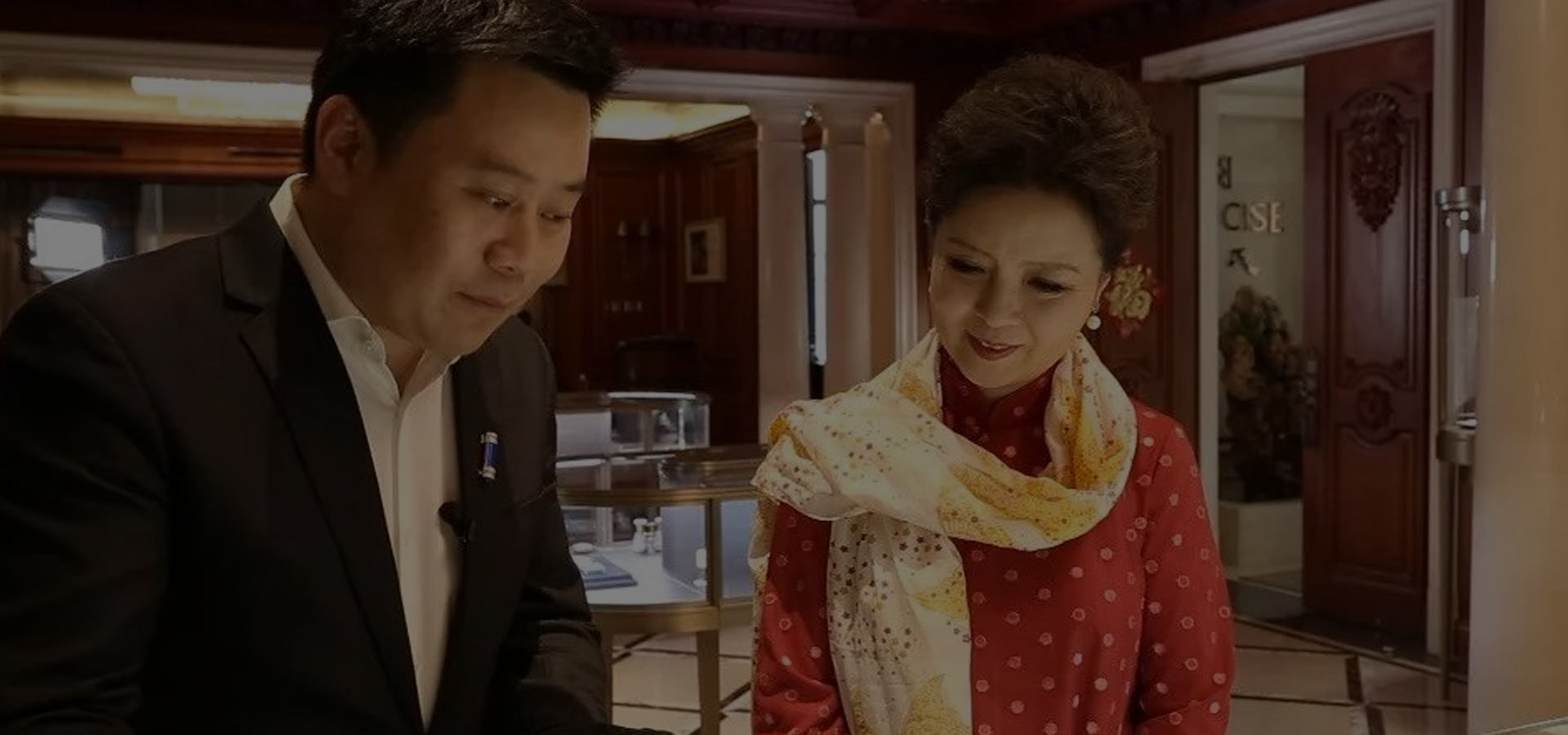 董事长孔令俊与主持人丛薇参观珐琅展厅相关画面