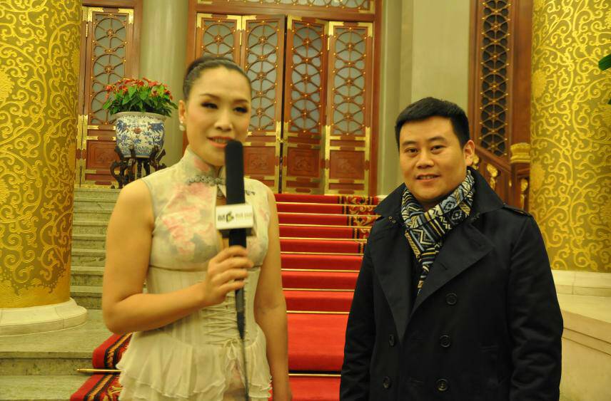 孔氏珐琅品牌创始人孔令俊在接受媒体采访,讲解孔氏的爱心之路