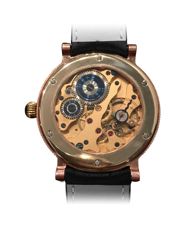 此次搭载的机芯研发耗时两年,是Frank Juzti先生的第一款腕表机芯,机芯采用古董腕表的机芯结构,较大的摆轮微调设计体现了复古的情,怀同时腕表的发条盒也经过特别设计,从而增强动力储存的能力。