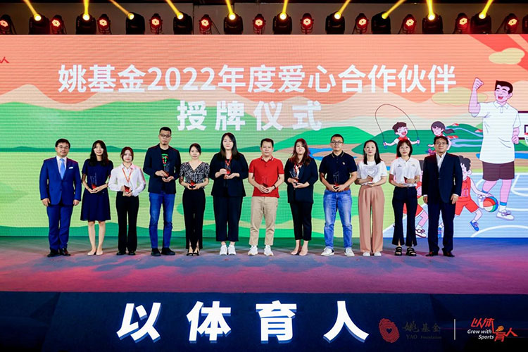 团中央青年志愿者行动指导中心党委委员、副主任熊剑、姚基金监事倪清为孔氏珐琅、康连接、中国黄金、CBA 你我 TA、速鹰体育、新潮传媒、我奥篮球、奥美集团、中华社会救助基金会,众辉体育颁牌。同时向未能到场的当代公益基金会、上马公益、龙磁科技、汤臣倍健、华蒙星、爱基金、上海弘盛、灵鼎拍卖行等爱心合作伙伴表达感谢